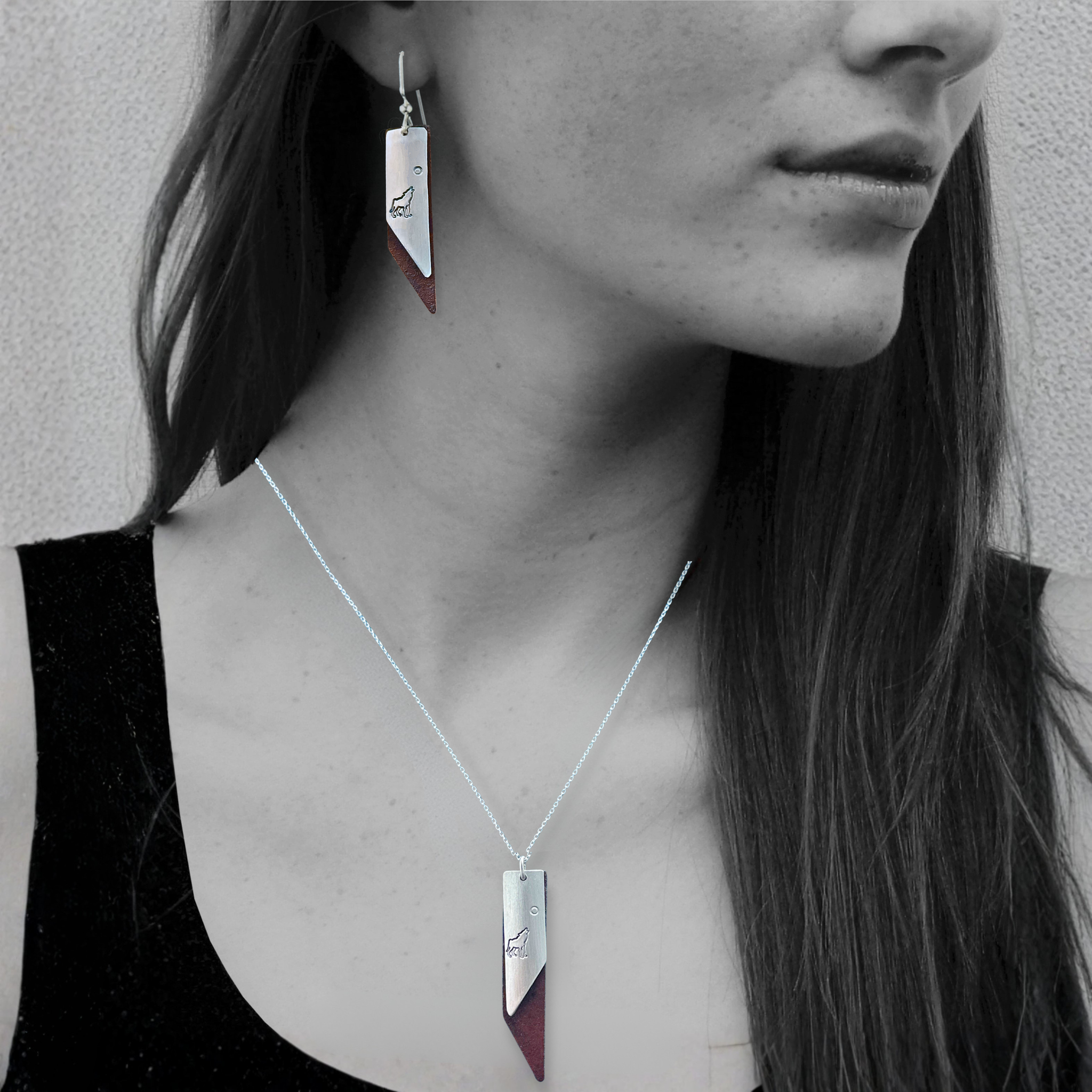 The Adeline Earrings combine matte pewter with warm antique tin in a bold, geometric design. Imprinted symbols add a layer of personal meaning, turning each clean line and sharp angle into a quietly expressive, wearable art piece.